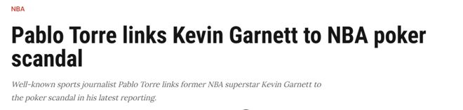 “有多名前职业运动员参与了由司法部‘皇家同花顺行动’起诉人员组织的私人扑克游戏。据多名直接了解2019年某场游戏情况的消息人士透露,加内特就是其中之一。”